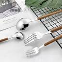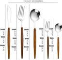 Elevate your dining experience with the KitchEase 20-Piece Silver Flatware Cutlery Set. This premium set includes 8 dinner spoons, 8 dinner forks, and 4 sharp steak knife, all crafted from high-quality stainless steel with a stunning Silver finish. The elegant design of the cutlery, paired with the stylish wooden handles, brings a perfect blend of sophistication and rustic charm to your dining table.