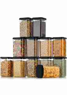 kitchkart Plastic Grocery Container - 1200 ml (Pack of 12, Black...