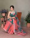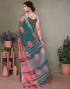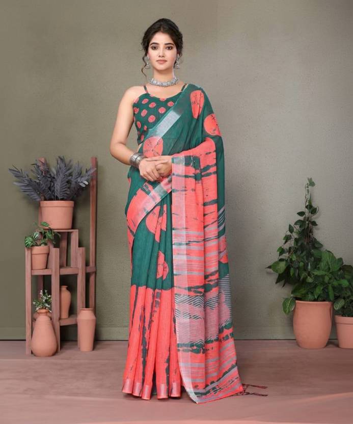 KITKET FASHION Digital Print Leheria Cotton Linen Saree (Green)