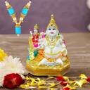 Mata Lakshmi with Kuber God Idol. TYPE OF MATERIAL : This Religious / Vastu Idol is Made of Polyresin Dust with Durable & Long Lasting Colours Antiue Finish. It is easily cleanable by Dry Cotton Cloth. USE : This Decorative Murti can be used as Pooja Mandir Interior Decoration Accessories / Table Decor Items or Showcase Decoration. BENEFICIAL IMPACT : As per VASTU Methology Religious Spritual Idols Showpieces Placed in North East Direction of Drawing / Living & Pooja Room , brings Wealth , Health , Peace & Happiness Among The Home Members Like Mother , Father , Husband , Wife , Brother , Sister , Son , Daughter & Friend . GIFT FOR : It is a Best Gift for Marriage Anniversary , Parents , Mothers day , Wedding Return Gift , Birthday , House warming , Office / Shop Inaugration , Festive occasions - Like Diwali ,Raksha Bandhan , Grah pravesh and Corporate Gifts. Sales package : 1 Laxmi Kuber Idol, 1 Designer Mala. Important Note: The color and design of this product may vary from what is shown in the image, as the product is sourced in mixed batches.