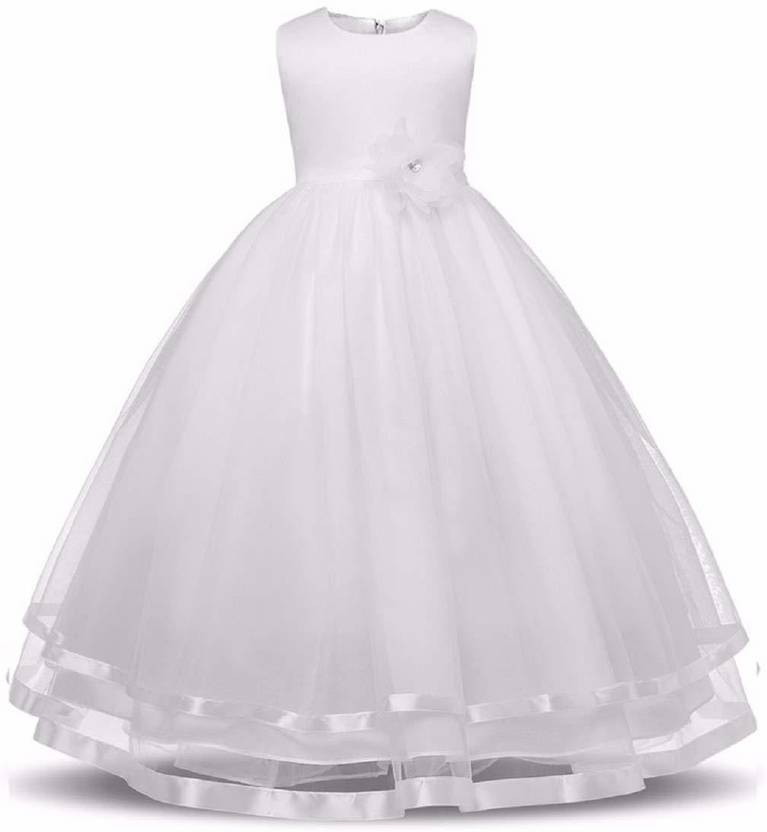 KITTOO Maxi/Full Length Party Dress (White, Sleeveless)