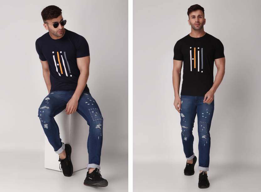 KIUTEES Solid Men Round Neck Multicolor T-Shirt