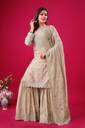 Kiwa Studio chinnon silk fabric embroidered kurti with chinnon silk fabric embroidered dupatta and sharara set for wedding and party wear. It is specially designed for wedding and party wear.