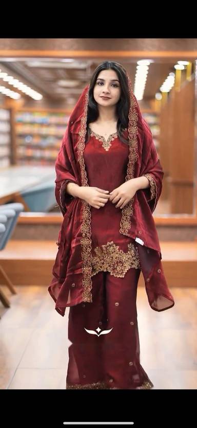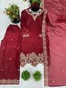 Kiwa Studio Heavy Faux Georgette fabric embroidered kurti with heavy faux georgette embroidered dupatta and sharara set for wedding and party wear. It is specially designed for wedding and party wear.