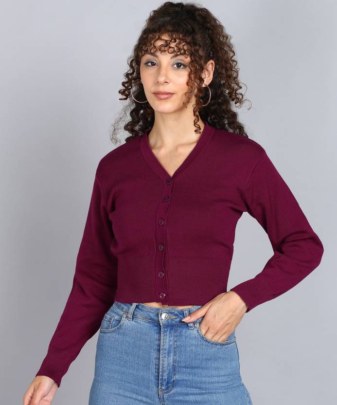 Kiyansh Creation Solid V Neck Casual Women Purple Sweater