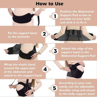 Owing to its user-friendly construction, this pregnancy support belt is simple to put on and adjust as needed. To begin, you can position the abdominal support pad as low as possible on the belly and fasten it in place. Then fit the support band of the buttocks and attach its edge to the abdominal support pad. After that, you can wrap the elastic band around the upper abdomen and secure it to the support band. Finally, you can use the adjustable shoulder strap according to individual needs and attach it to the belly support band.