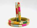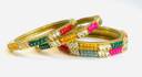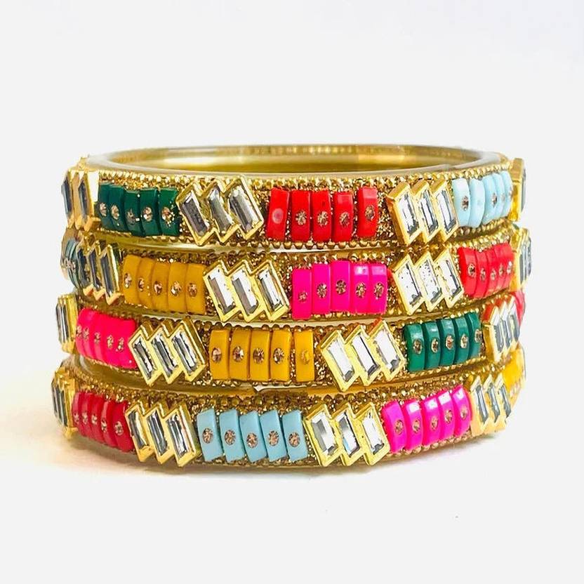 Stunning set of four multi-colored bangles with modern crystal design. Perfect for festive and party wear. Mix size available.