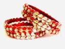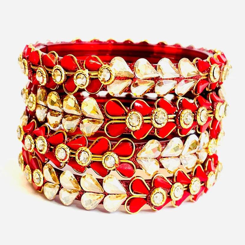 Traditional Red & Gold Bangles with Crystal Petal Accents