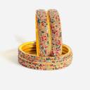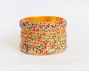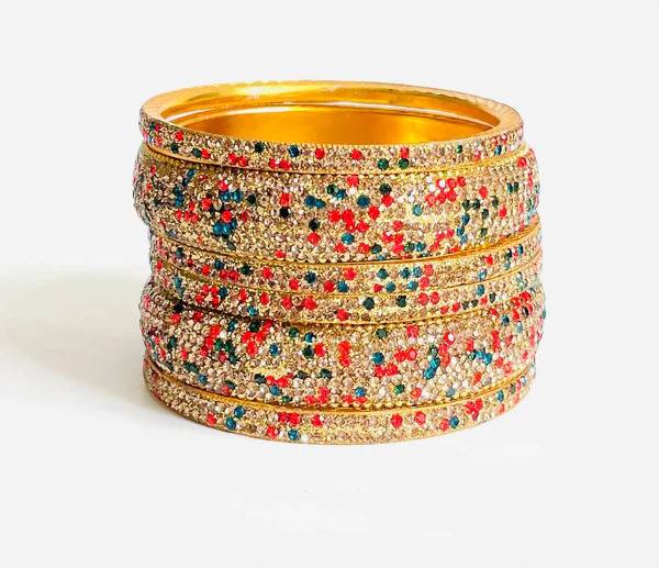 The vibrant hues of the crystals, combined with the sparkling floral centerpiece, create a playful yet elegant look. Perfect for festive occasions, casual gatherings, or adding a touch of bohemian flair to your style, these bangles are sure to turn heads and brighten your day.