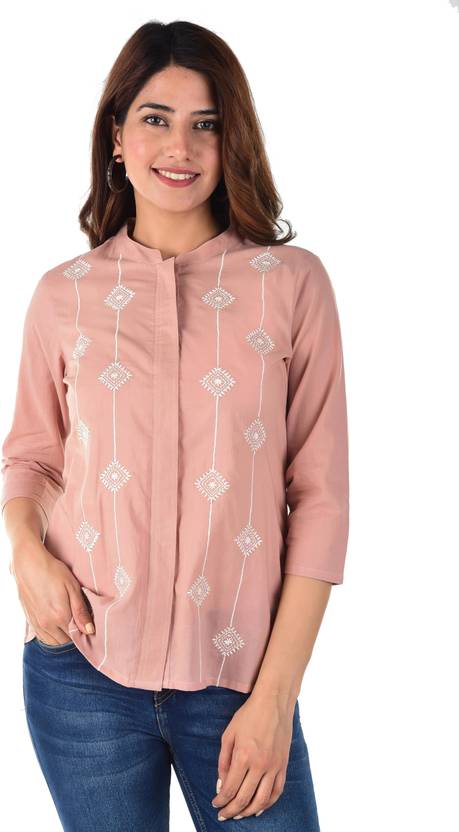 KIZI Women Tailored Fit Embroidered Mandarin Collar Casual Shirt