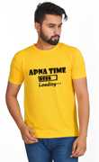 Apna Time Aayega Print Men Printed Round Neck Polycotton Black, Yellow T-Shirt