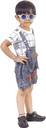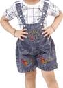 Designed with comfort and visual appeal in mind, this set includes a soft T-shirt featuring a round neck and half sleeves. This offers ease of movement and a relaxed, casual look. Furthermore, the accompanying dungaree comes with adjustable shoulder straps secured by buttons. In addition, its short length and regular fit make this set suitable for warm weather. The addition of up to two decorative waist pocket flaps adds a subtle touch of style.