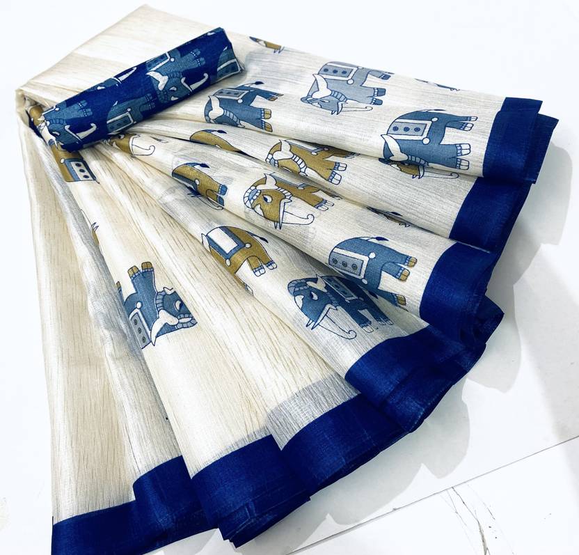 kjs bring you this kalamkari print elephant saree which comes with blouse made up of superior quality material a must for all saree lovers