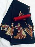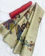 Kjs Printed Kalamkari Cotton Blend Saree (Multicolor)