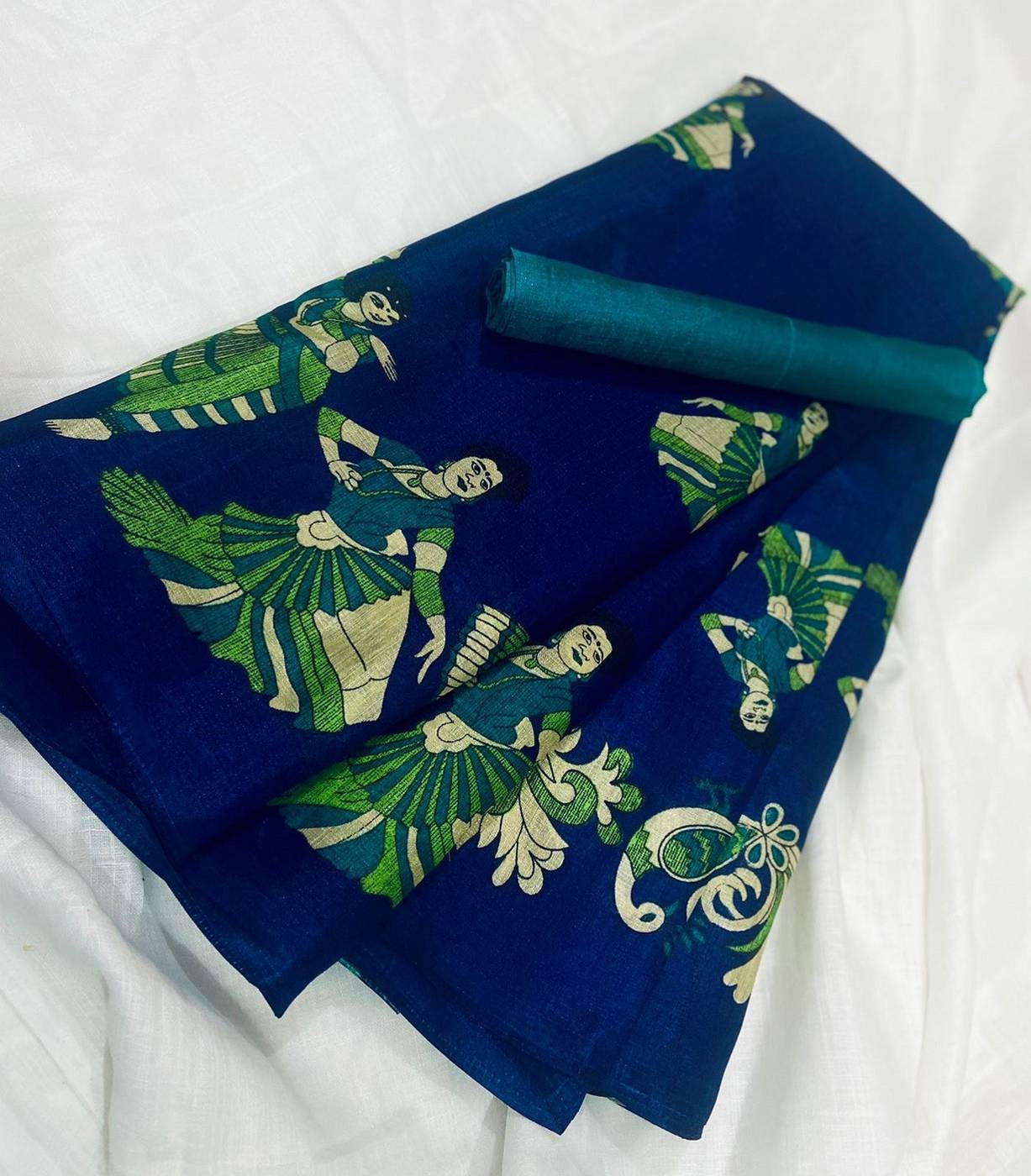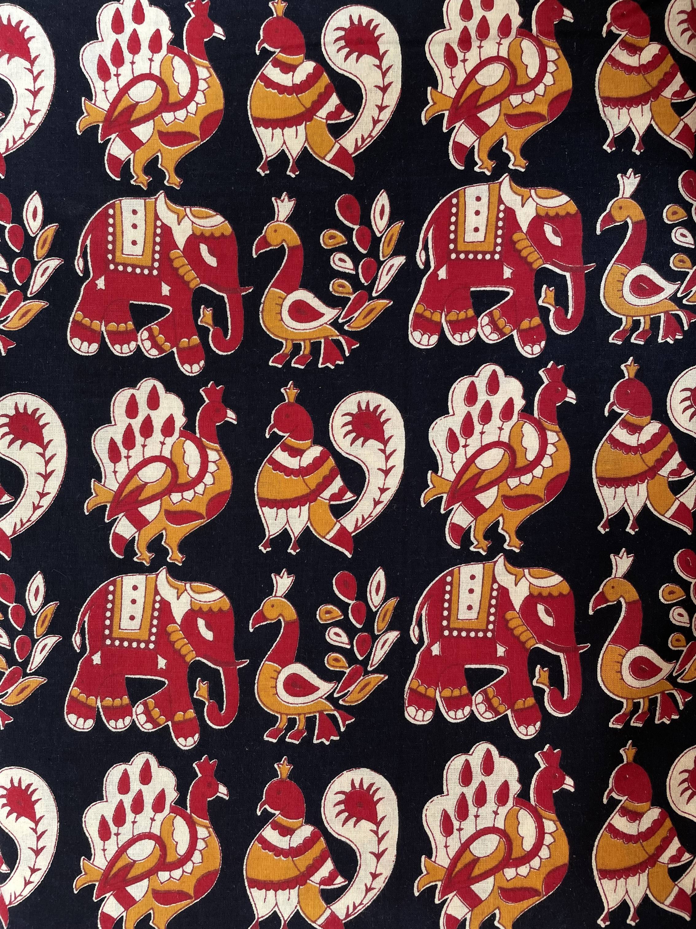 Kjs Printed Kalamkari Cotton Blend Saree (Multicolor)