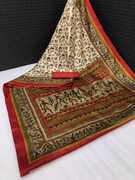 Kjs Printed Kalamkari Cotton Blend Saree (Multicolor)
