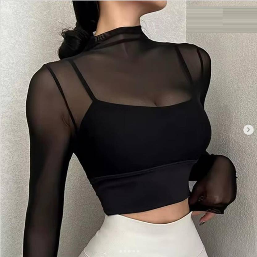 Women Mesh Tops Long Sleeve, Blouse Tee See Through, Sexy Long Sleeve Sheer Mesh Top, Slim Fit T Shirt Transparent