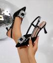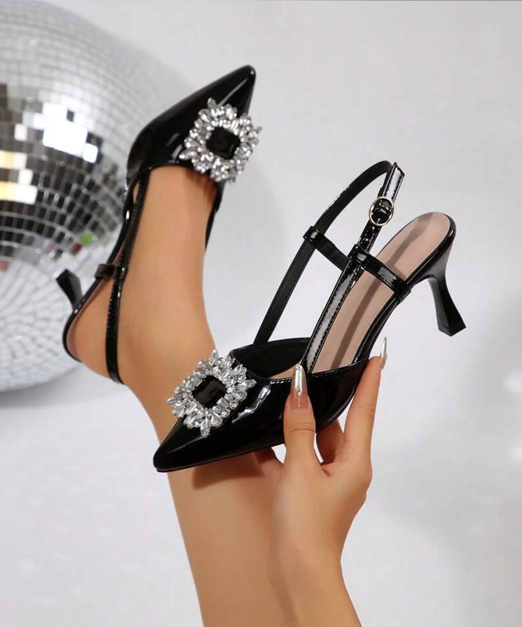 Elegant pointed-toe design with a crystal-embellished buckle for a chic look.