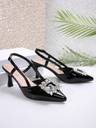 Elegant maroon stilettos featuring a pointed toe, crystal-embellished buckle, and slingback strap. Perfect for parties, weddings, or formal occasions. Outer material made of patent leather for a glossy finish.