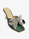Step out in style with these stunning women's spool heels from Klexio. Crafted from premium satin material, these heels feature a beautiful emerald black and green color adorned with a dazzling bow and bling embellishments, making them perfect for party occasions. The unique spool heel is encrusted with rhinestones, adding a touch of glamour to your ensemble. With a comfortable slip-on design and a stable heel, these heels ensure you look elegant while staying comfortable.