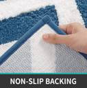 The nonslip room mat for the floor has a rubberised backing to prevent shifting and skidding. Please place the non-skid toilet rug on the DRY SMOOTH FLOOR only. Water under the bathroom mat can cause it to slip. Keep the bottom of the bath rug dry.
