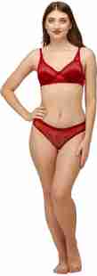 Kliznil Bra & Panty Set Self Design Red, Maroon, Pink Lingerie Set