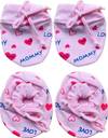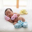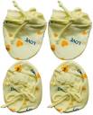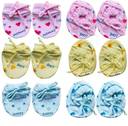 3 pairs of Knotted Mittens and 3 pair Knotted of Booties Material: Cotton and Easily washable Skin Friendly, Feather Touch Baby Mittens & Idle for Gifting too Regular fit, Soft and Comfartable Mittens for baby 0-6 months - These are suitable for the baby of 0 to 6 months. These mittens are FREE sized and has no elastic, These are knotted mittens and booties. meaning they will be a comfortable fit for a normal to healthy baby.