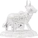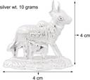 Cow is not a mere animal for us we consider Cow as an adobe of 33 crore hindu deities and hence Cow is considered as sacred. Cow has been treated as auspicious and also a symbol of compassion and piousness. Cow is treated as the highest and most pious animal and is given the utmost importance, being at the apex in the animal world, that's why KMJ has brought for you a pure silver(chandi) kamdhenu Cow and calf idol, which you can keep in your home temple and worship it. This beautiful pure silver kamdhenu Cow idol invites unlimited bliss, good luck, wealth and prosperity in your life by bringing home. Silver is considered to be a holy and pure metal. Silver is believed to channel positive energy around you. That is why this silver Cow statue can be very lucky for you. Also this kamdhenu cow can be a perfect gift for all the occasions such as wedding, anniversary, birthday, diwali, retirement, house warming etc. MATERIAL : silver (chandi). WEIGHT: 10 grams. SIZE: length 4 cm / height 4 cm. GIFTING : on the occasions of Diwali, birthday, wedding, anniversary, rakshabandan, housewarming, retirement, mother's day, father's day this can be readily turned into a wonderful gift item. PACKAGING: you will get this kamdhenu cow and calf idol in a stylish luxury box that makes it a great choice for birthday, wedding, anniversary etc.