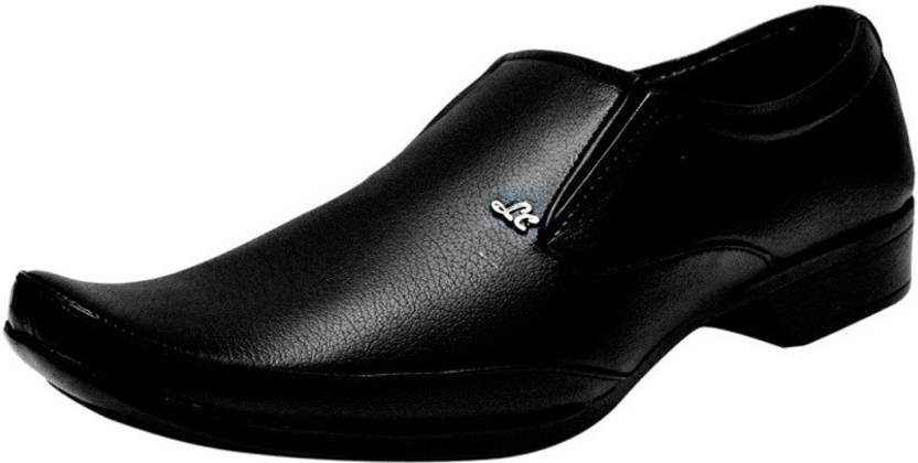 Knight ace Men Synthetic Leather Office Black Formal Shoes Slip On Shoes For Men (Black , 7 UK/India)