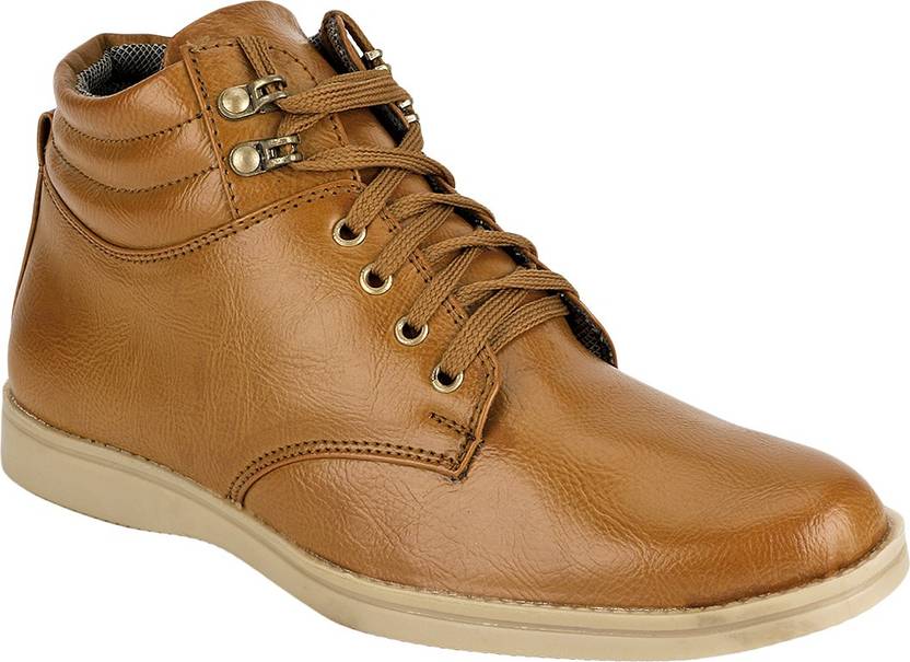 Look cool on your day out with your bunch of friends by teaming your jeans and T-shirt with this pair of tan boots from Knight Ace. Made of patent leather, the boots have an elegant look, making you look cool at a club or an evening outdoors.
