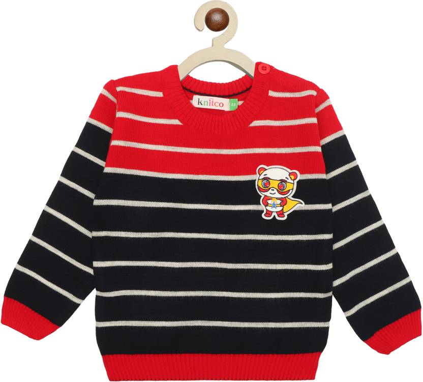 Knitco Striped Round Neck Casual Baby Boys & Baby Girls Red Sweater