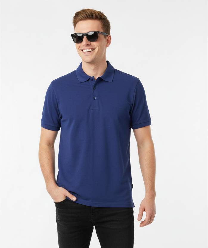 Men Solid Round Neck Pure Cotton Blue T-Shirt