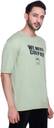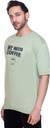 Men Printed Round Neck Cotton Blend Light Green T-Shirt