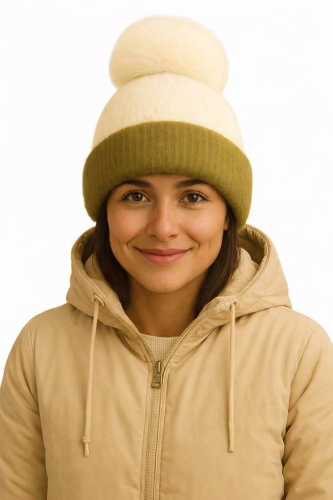 Cute woolen warm ( soft warm fur inside pom-pom on top ) winter caps for women Woven