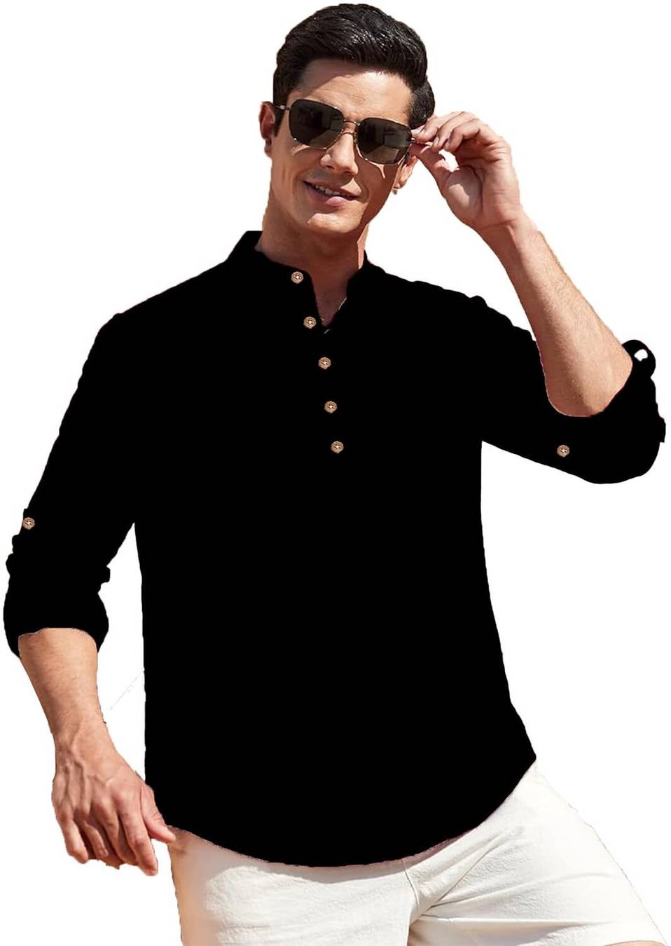 This Cotton Blend short kurta is perfect for men who value style and comfort. Its versatile design makes it ideal for any occasion—festivals, parties, or casual outings. Product Details 📋 👨🦰 Gender: Men 🎨 Pattern: Solid 🧵 Design Type: Plain 🔘 Closure: Button 👕 Sleeve: Full Sleeve (Roll-Up Option) ⬆️ Waist Rise: Mid-Rise 🪡 Collar: Mandarin/Chinese ✂️ Hemline: Curved 🌿 Fabric: Cotton Blend 📏 Product Length: Short 📦 Pack of: 1 Material & Care 🧺 Fabric: Cotton Blend Wash: Suitable for hand wash and machine wash. How to Style 🎯 Pair it with dark-wash denim or linen trousers for a casual look. Dress it up with a pair of churidar or slim-fit pants for festive occasions. Add leather sandals or loafers and a wristwatch for a classy finish. Roll up the sleeves for a relaxed vibe during daytime events. This short kurta seamlessly blends traditional elegance with modern styling, making it a wardrobe essential for every man! 👌"