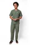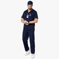Designed with a focus on comfort, this scrub suit features a precisely tailored fit that ensures ease of movement. The combination of pants and shirt is crafted to give ultimate flexibility and let you move comfortably and freely during long hours of work. The adjustable drawstring and elastic waistband on the pants ensure a secure yet flexible fit, accommodating a range of sizes. The shirt is created with a relaxed fit, offering ample room for movement without feeling too loose or restrictive.