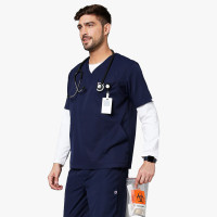 Crafted from a poly viscose material, this scrub suit offers an excellent combination of durability and comfort. The fabric is soft against your skin and offers a pleasant wearing experience throughout your shift. Poly viscose is known for its strength and resilience, ensuring that the scrub suit remains intact and retains its shape even after frequent use and washes. The material is also breathable, allowing for proper air circulation to keep you cool and comfortable. Additionally, it is resistant to wrinkles and shrinking, maintaining a neat and professional appearance with minimal maintenance.