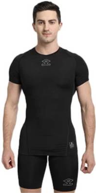 Sports compression tights in fast drying functional fabric designed to help keep you dry and cool while exercising.Black solid mid-rise training sports shorts, slip-on closure, Men Skinny Fit.