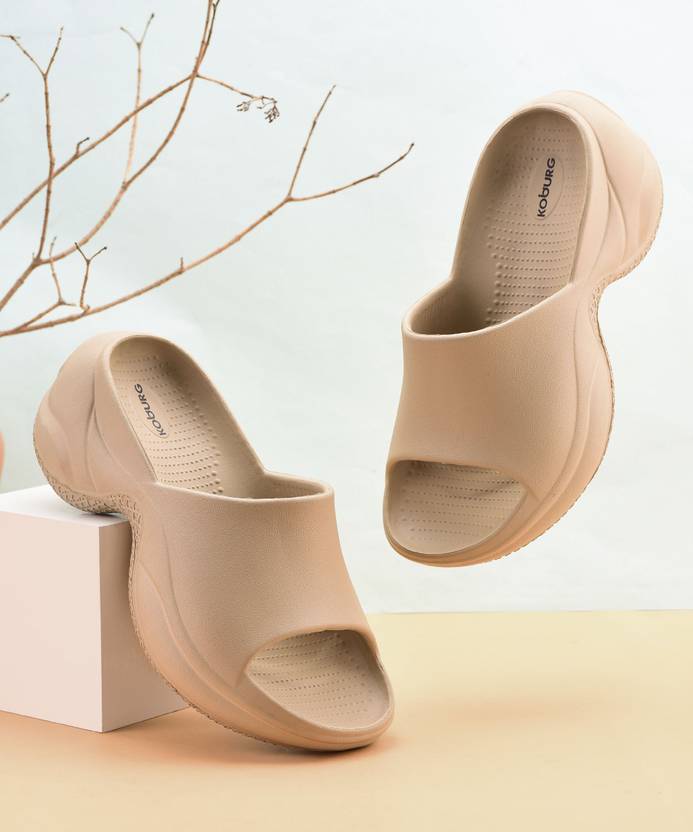 Koburg Lily Women Slide|Durable|Lightweight|Antiskid|Heel|Comfortable|Extra Soft KS-424 Women Slides  (Beige , 7)