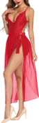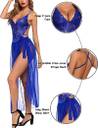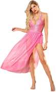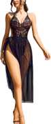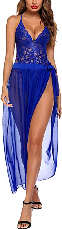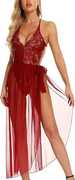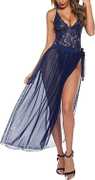 Exotic Sleepwear Side Slits One Piece Lingerie Deep V Lace Bodysuit Mosaic Net Skirt