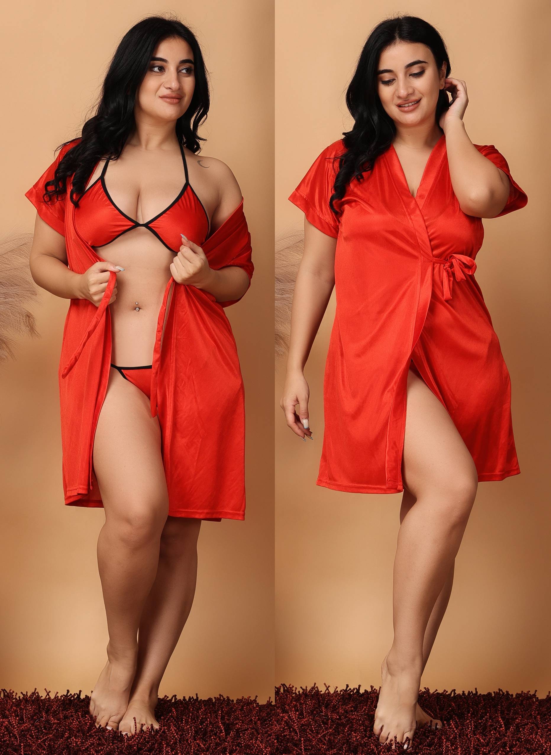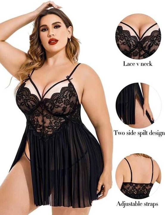 The lingerie features intricate lace work on the torso, adding to the stunning looks of the garment. The lace design is both beautiful and delicate, enhancing the overall elegance of the garment. The plunging v-neckline creates a flattering and bold look, accentuating your neckline and adding to the sensual appeal. This combination of lace and neckline design makes the babydoll both eye-catching and refined.