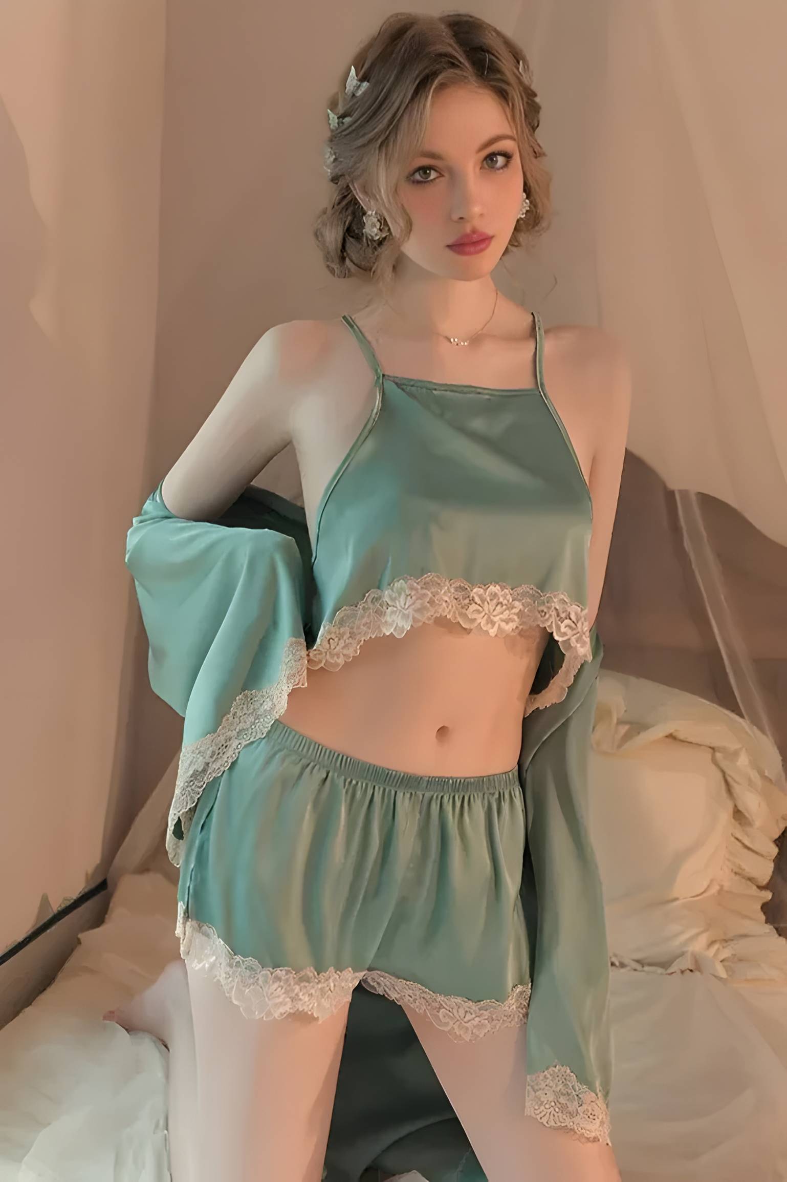 Washing Instructions: Hand washing or machine washing with lingerie bag, max 40 degrees celsius, Hang to dry, Iron with a press cloth.