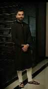 KOHLIKURTA Men Embroidered Straight Kurta (Black)