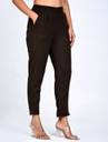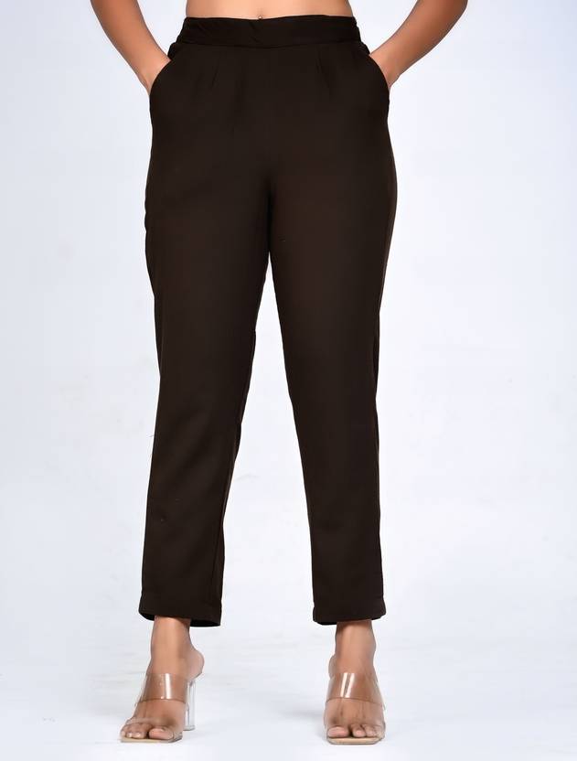 These women stylish brown solid pant with 4 pockets from Kohsh are perfect pick for you. These brown straight fit pant are made with 100% pure cotton fabric. Wear these solid mid rise pant with top and heels depending on your preference. Kindly ensure the size chart before buying. Length- 36.5 Inhces.