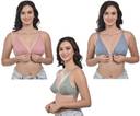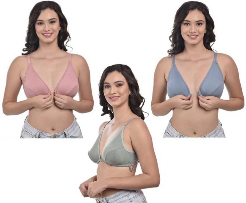 KOISA women front open bra front closure bra combo pack of 3 b cup 30 size Women Plunge Non Padded Bra (Multicolor)