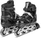 KOJERAFASHION Skates with PU Flashing Wheel Aluminum Body in-Line Skates Shoe Skates - Size Age 10-16 Years UK (Black)