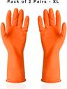 Reusable Latex Rubber Gloves for Big Hands, Multipurpose Non-Slip Rubber XL Gloves for Gardening, Sanitation, Industrial, Dishwashing, Cleaning, etc (X-Large, Orange, 2 Pairs)