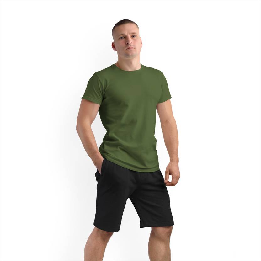 KOKO MOMO Plain Olive Green Round Neck T-Shirt Men Solid Round Neck Pure Cotton Green T-Shirt