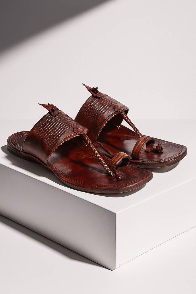 Every pair of Kolhapuri chappal for men is meticulously handcrafted using pure, high-quality leather sourced from ethical tanneries. The intricate braiding, hand-stitching, and natural polish reflect the dedication of artisans who have perfected this craft over generations.