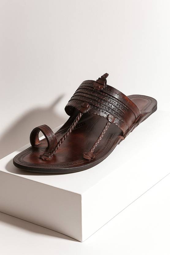 Every pair of Kolhapuri chappal for men is meticulously handcrafted using pure, high-quality leather sourced from ethical tanneries. The intricate braiding, hand-stitching, and natural polish reflect the dedication of artisans who have perfected this craft over generations.